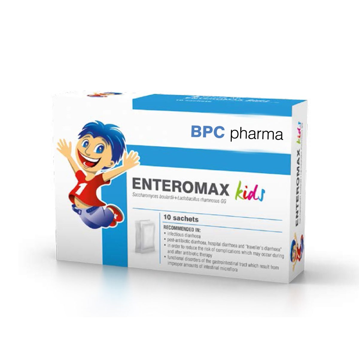 BPC Pharma Enteromax Kids has clinically proven effect. It’s demonstrated that the product contains the most-examined strains of probiotics Saccharomyces boulardi and Lactobacillus rhamnosus LGG.
